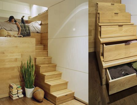 樓梯在家中占用空間比例大,相對的使用功能也較為單一,如何將樓梯也利用起來呢?上面的這種樓梯收納恰好的彌補了樓梯功能的不足,抽屜樣式的樓梯設計不僅保證了樓梯的日常使用功能,也將收納儲存功能融為一體,讓人直呼創意的偉大。
