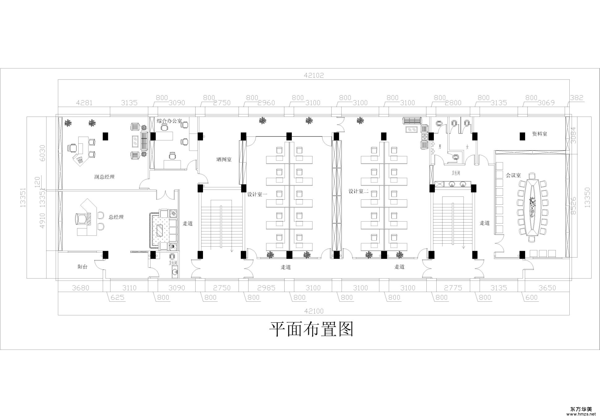 ▄設(shè)計(jì)需求: 設(shè)計(jì)師根據(jù)甲方需求,將空間劃分為前臺接待區(qū)、公共辦公區(qū)、接待室、會議室、總經(jīng)理辦公室、董事長辦公室、走廊、茶水間、綜合辦公室、財(cái)務(wù)室、洽談室、洽談室等,滿足甲方的辦公需求。