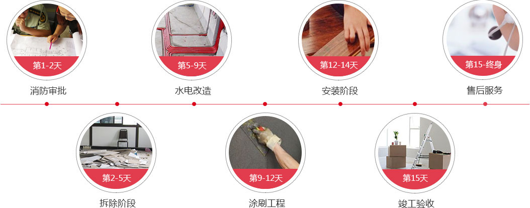 施工過程統一安排,銜接緊密,從毛坯到入住只需15天標準工期。