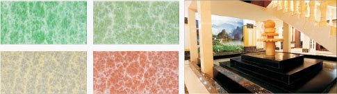 [華美藝術隔斷] : 通過將建筑、尾礦等余料回收,通過自主發明的全新第五代水性環氧互穿技術制造而成的無污染、可私人定制的仿石產品。產品實現了綠色循環、資源再生,可代替陶瓷、天然大理石、玻璃、木材等相關建筑裝飾、裝修材料。